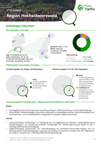 Das Factsheet analysiert für die Modellregion Oberrhein mit dem Fokus auf die Region Hochschwarzwald demografische und räumliche Rahmenbedingungen sowie Flächenpotenziale für Wind‑ und Solarenergie. Es zeigt regionale Unterschiede und Voraussetzungen für den Ausbau erneuerbarer Energien auf. Ziel ist, Planungsprozesse raumsensibel und kontextbezogen zu gestalten, um erneuerbare Energieprojekte gesellschaftlich tragfähig und technisch umsetzbar zu machen.